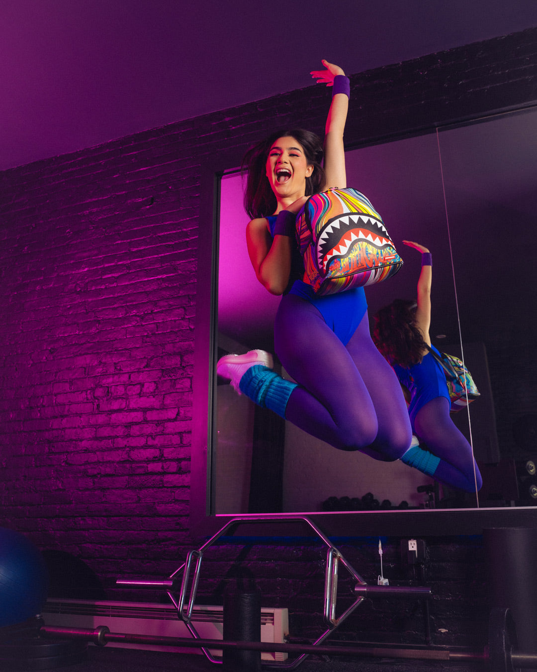 Dimensions: 10" x 5" x 11.5" • Two large main zippered compartments • Side pockets • Zippered Stash pocket • Adjustable straps for custom sizing • Gold zippers with metal hardware