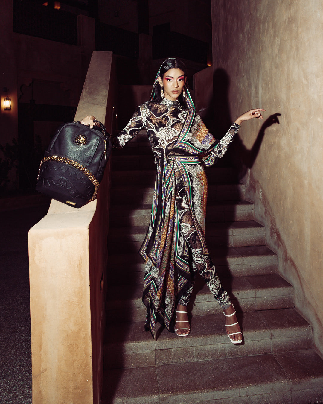 Dimensions: 18" x 6" x 11.5" • Front zipper pocket • Side pockets • Zippered Stash pocket • Separate velour sunglass compartment • Ergonomic mesh back padding • Adjustable Straps for custom sizing • Gold zippers with metal hardware • Metal "Sprayground Authentic" badge • Slide through back sleeve connects to carry-on luggage to free your hands