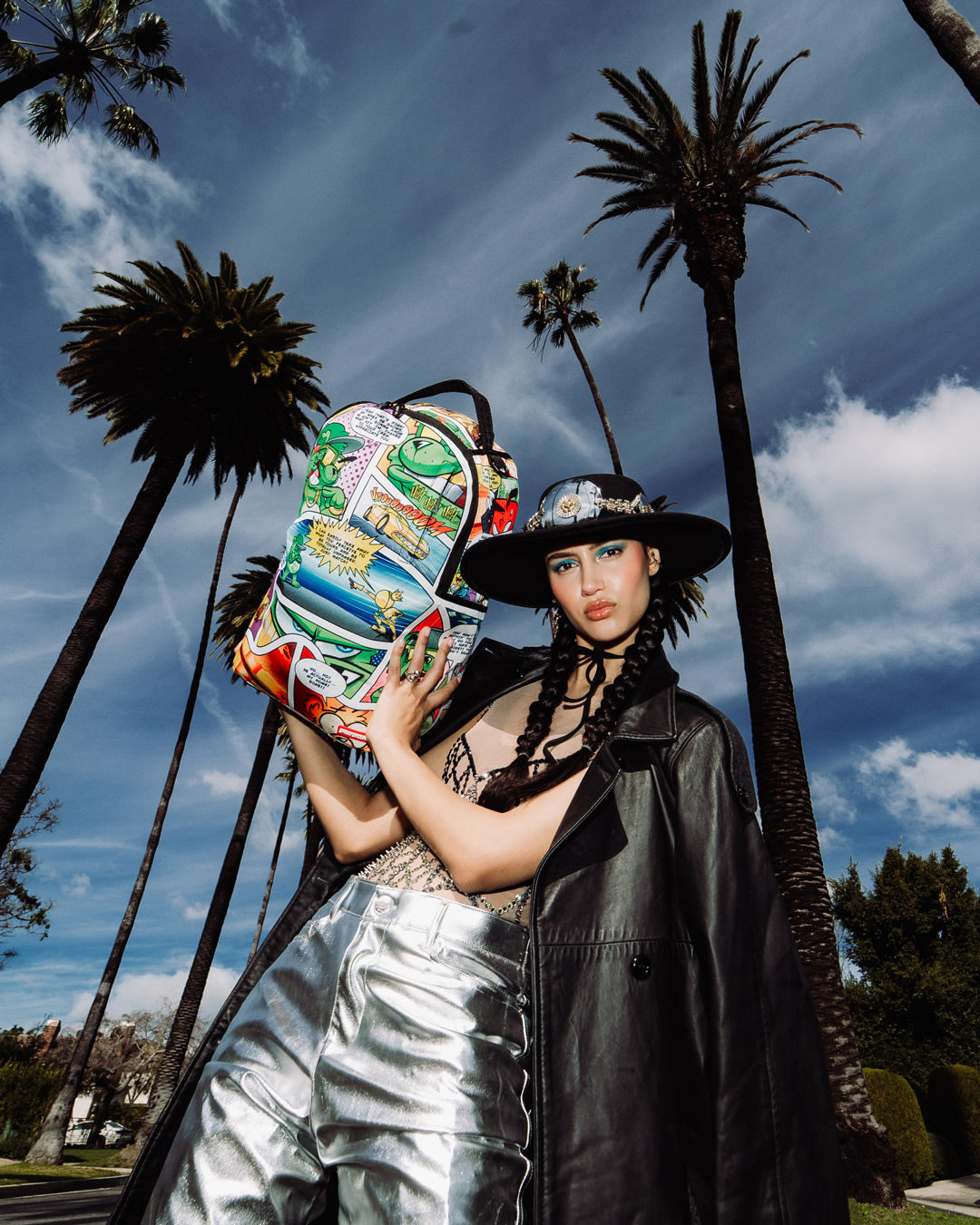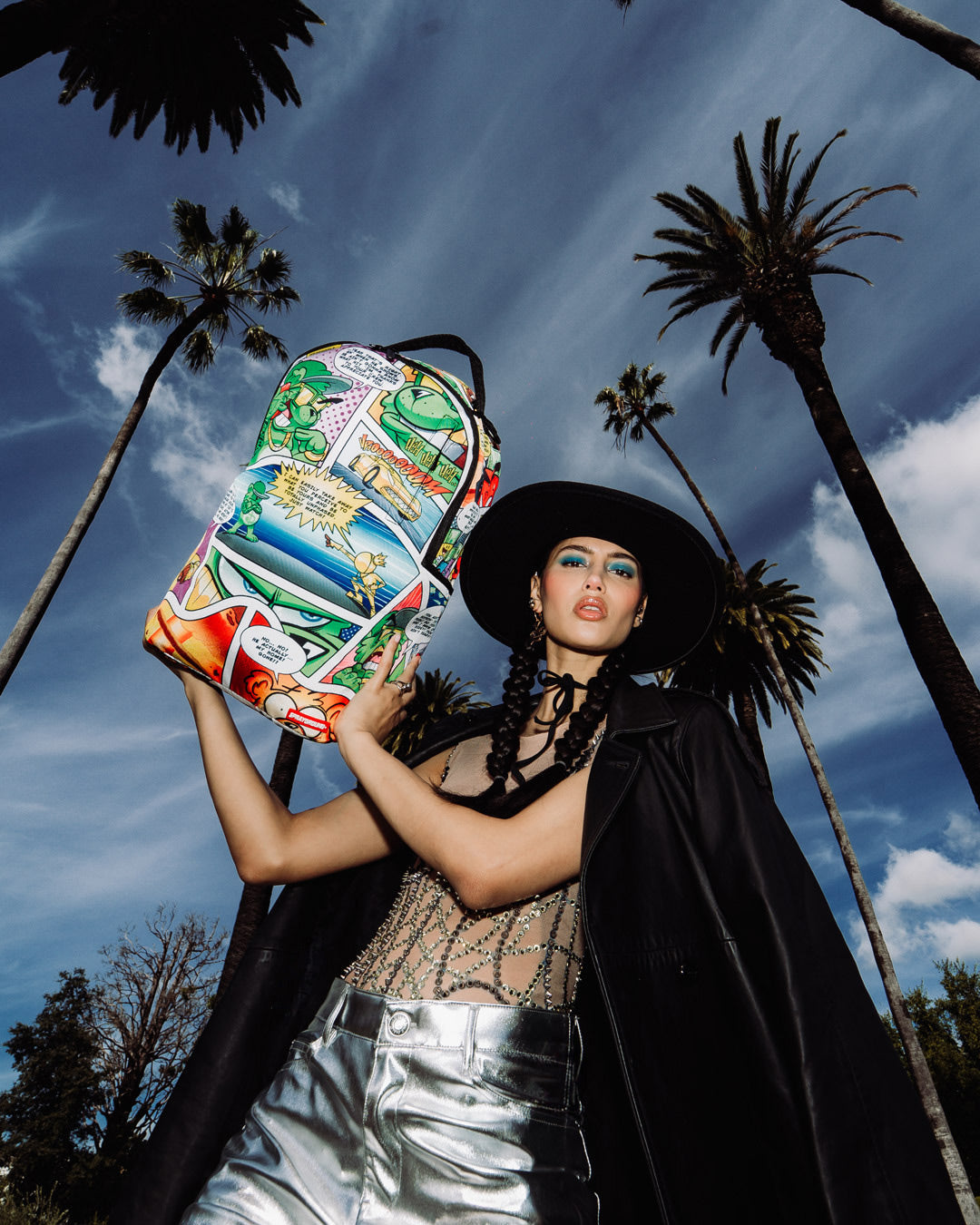 Dimensions: 18" x 6" x 11.5" • Front zipper pocket • Side pockets • Zippered Stash pocket • Separate velour sunglass compartment • Ergonomic mesh back padding • Adjustable Straps for custom sizing • Gold zippers with metal hardware • Metal "Sprayground Authentic" badge • Slide through back sleeve connects to carry-on luggage to free your hands