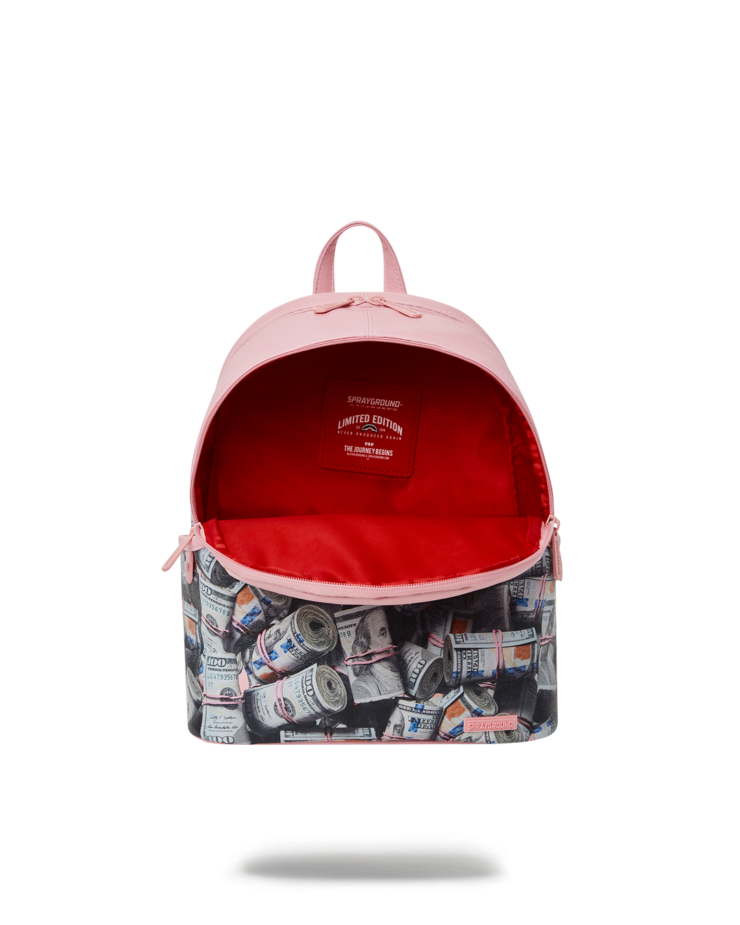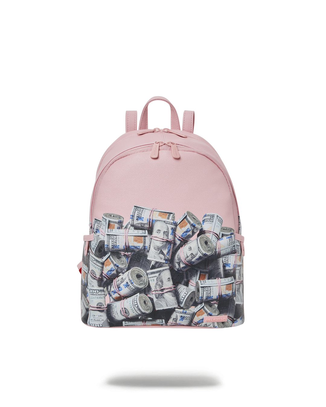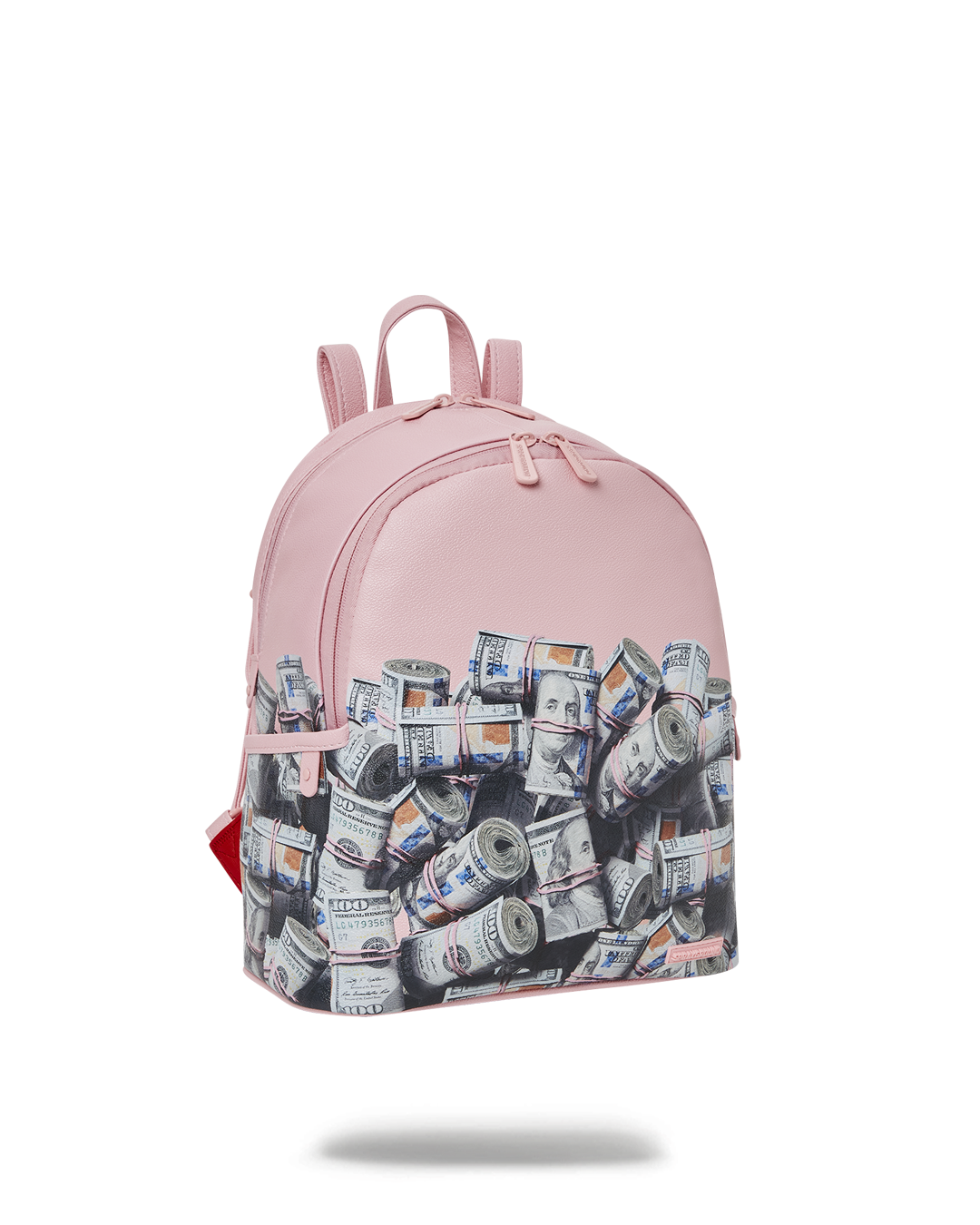 Dimensions: 10" x 5" x 11.5" • Two large main zippered compartments • Side pockets • Zippered Stash pocket • Adjustable straps for custom sizing • Gold zippers with metal hardware