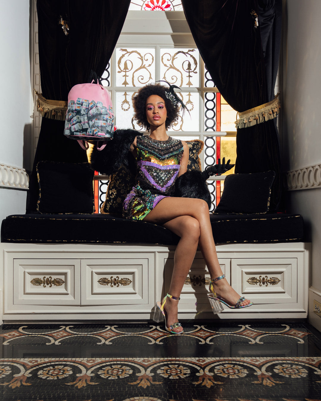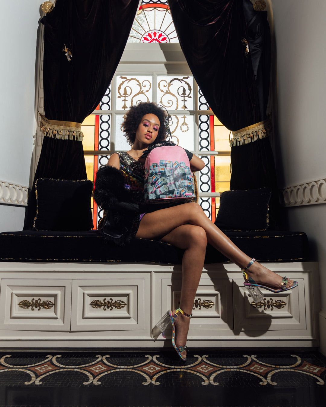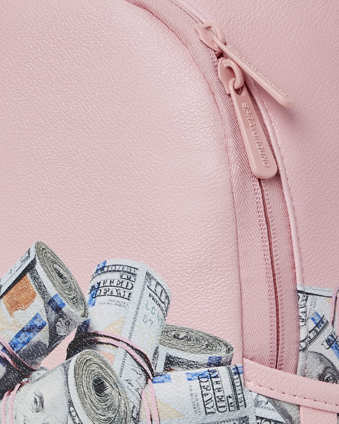 Dimensions: 10" x 5" x 11.5" • Two large main zippered compartments • Side pockets • Zippered Stash pocket • Adjustable straps for custom sizing • Gold zippers with metal hardware