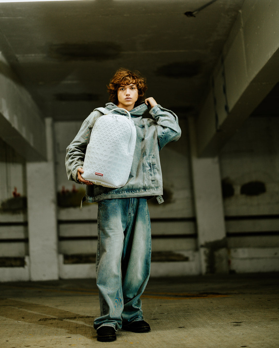 Dimensions: 18" x 6" x 11.5" • Front zipper pocket • Side pockets • Zippered Stash pocket • Separate velour sunglass compartment • Ergonomic mesh back padding • Adjustable Straps for custom sizing • Gold zippers with metal hardware • Metal "Sprayground Authentic" badge • Slide through back sleeve connects to carry-on luggage to free your hands