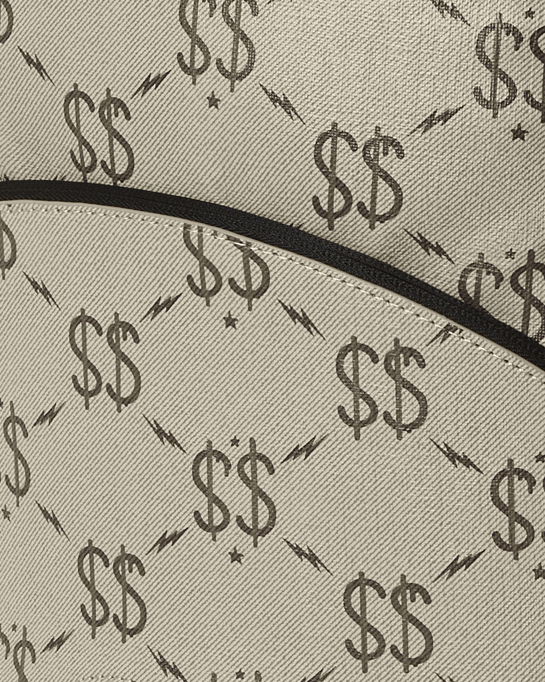 Dimensions: 18" x 6" x 11.5" • Front zipper pocket • Side pockets • Zippered Stash pocket • Separate velour sunglass compartment • Ergonomic mesh back padding • Adjustable Straps for custom sizing • Gold zippers with metal hardware • Metal "Sprayground Authentic" badge • Slide through back sleeve connects to carry-on luggage to free your hands