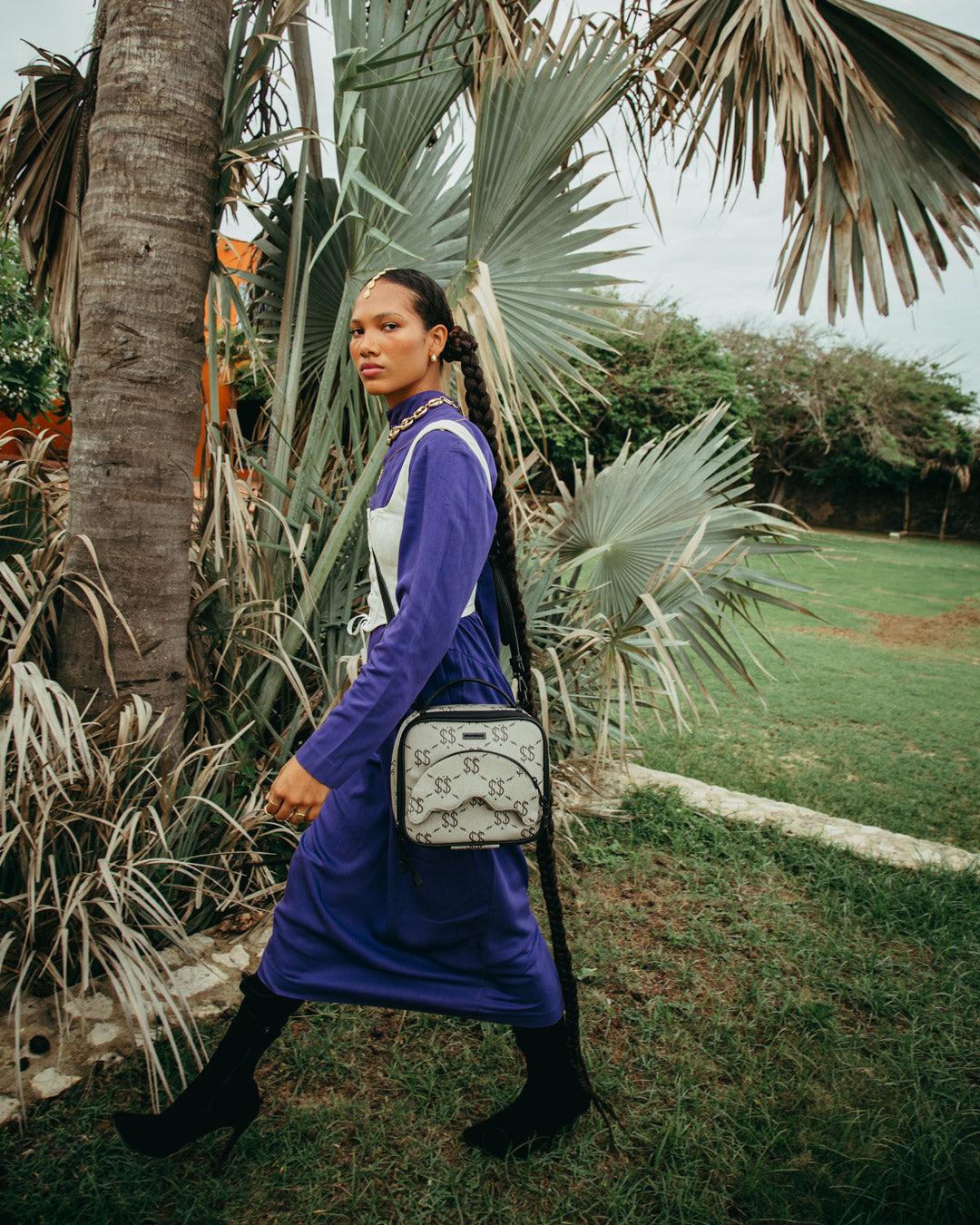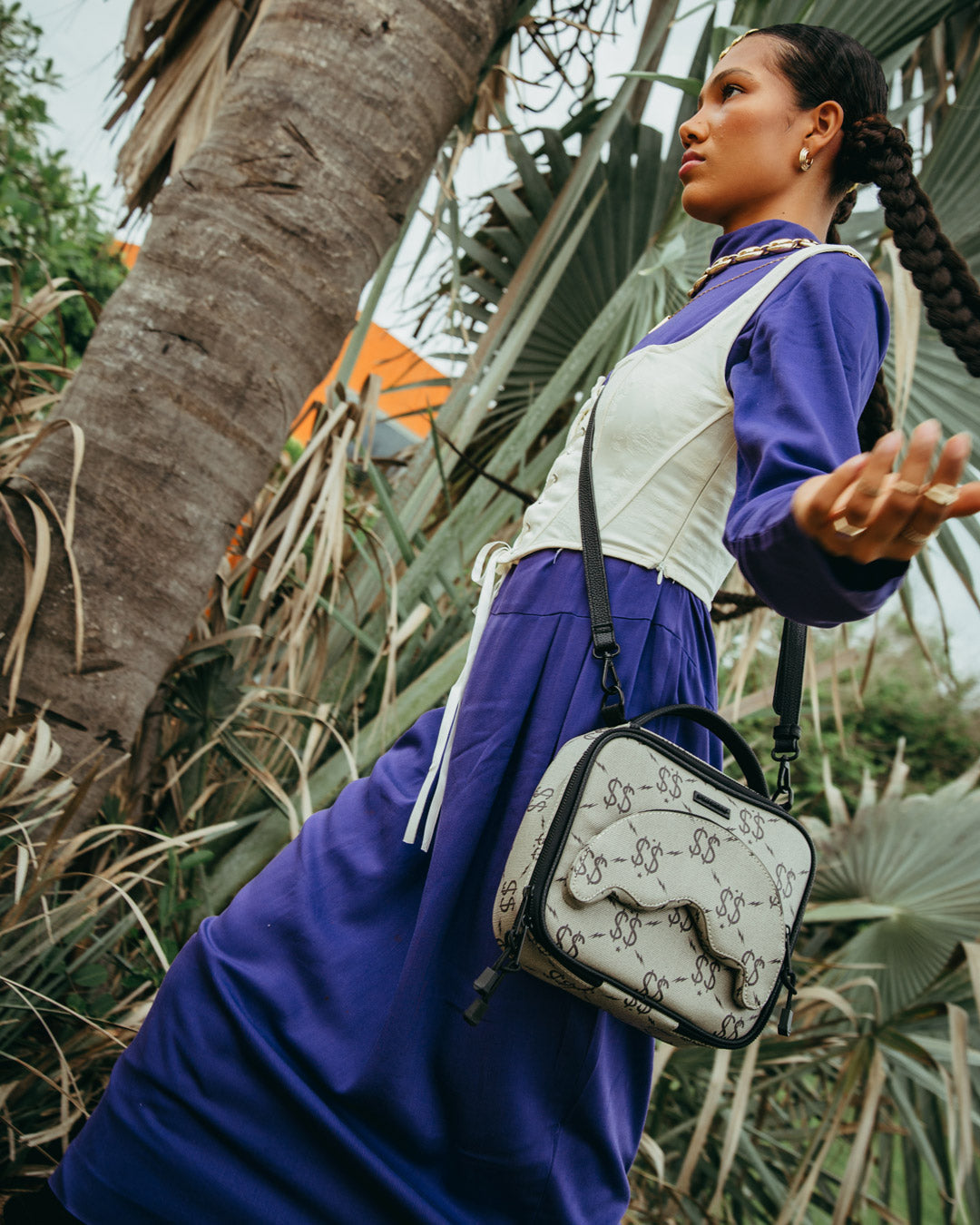 ExteriorDimensions: 8.5" x 3" x 8.5" • Double zipper opening • Top handle • Removable side handle • Black zippers with metal hardware • Zippered stash pocket