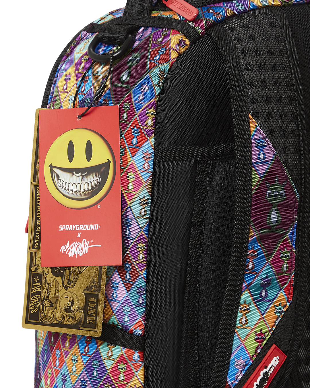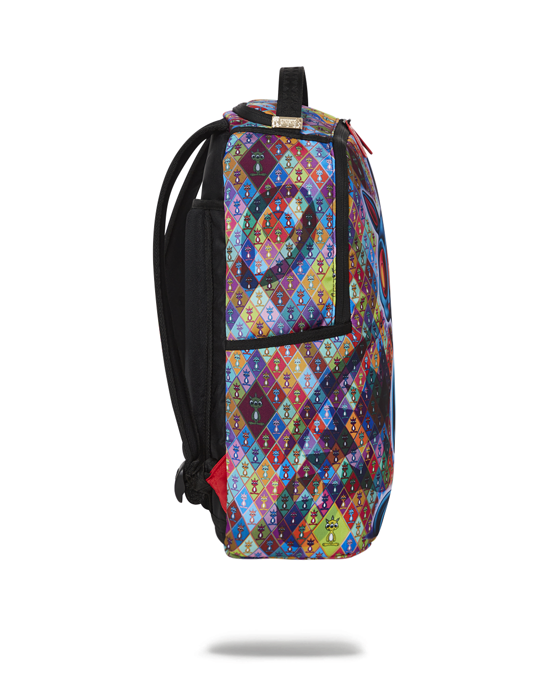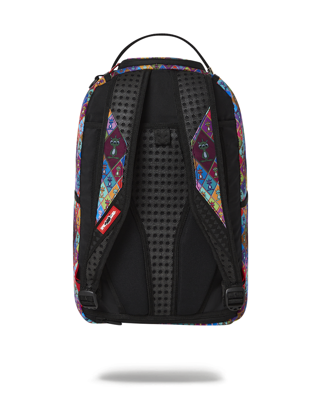 ExteriorDimensions: 18" x 6" x 11.5" ∙ Front zipper pocket ∙ Side pockets ∙ Zippered Stash pocket ∙ Ergonomic mesh back padding ∙ Adjustable Straps for custom sizing ∙ Nylon Zippers with Metal Hardware ∙ Metal "Sprayground Authentic" badge ∙ Slide through back sleeve connects to Carry on luggage to free your hands