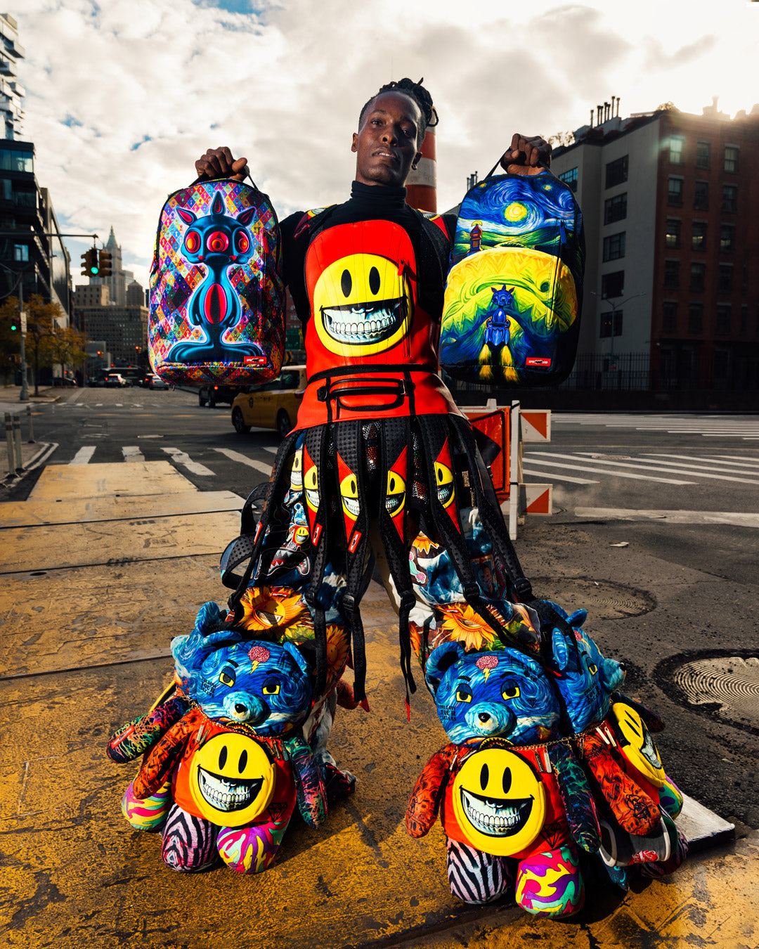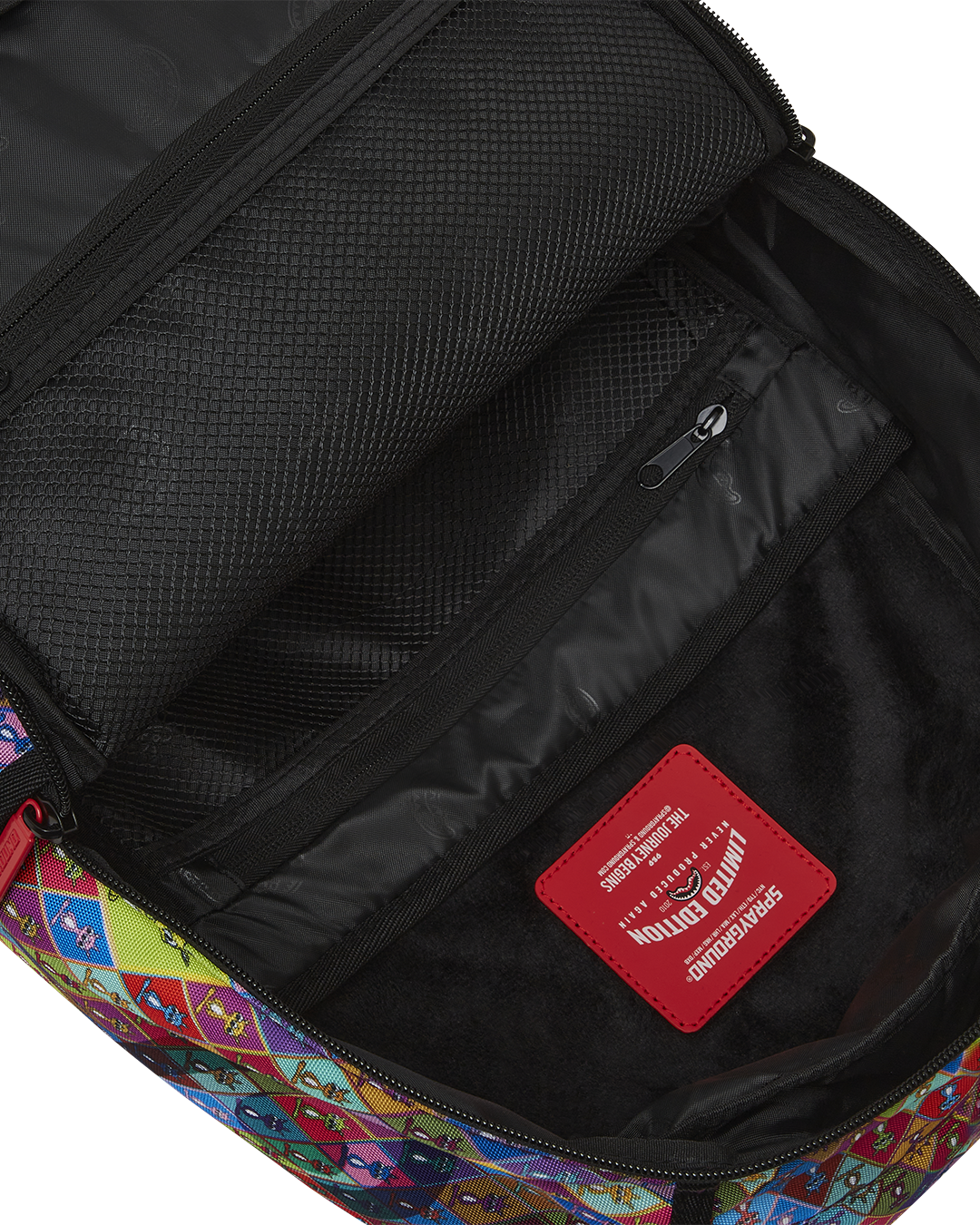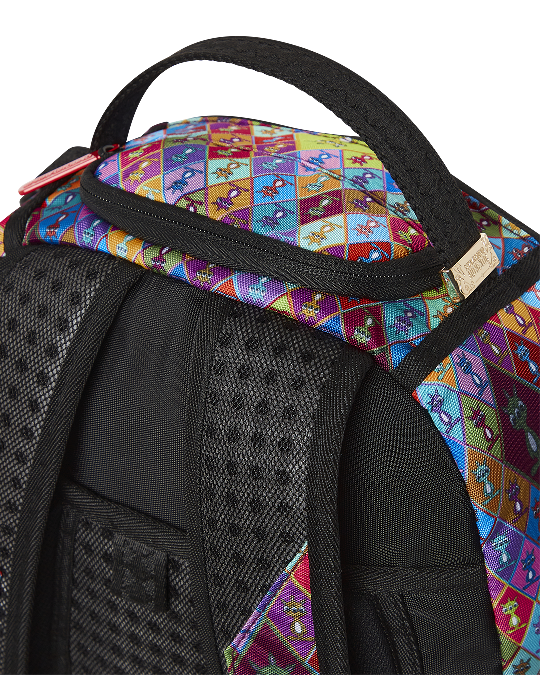 ExteriorDimensions: 18" x 6" x 11.5" ∙ Front zipper pocket ∙ Side pockets ∙ Zippered Stash pocket ∙ Ergonomic mesh back padding ∙ Adjustable Straps for custom sizing ∙ Nylon Zippers with Metal Hardware ∙ Metal "Sprayground Authentic" badge ∙ Slide through back sleeve connects to Carry on luggage to free your hands