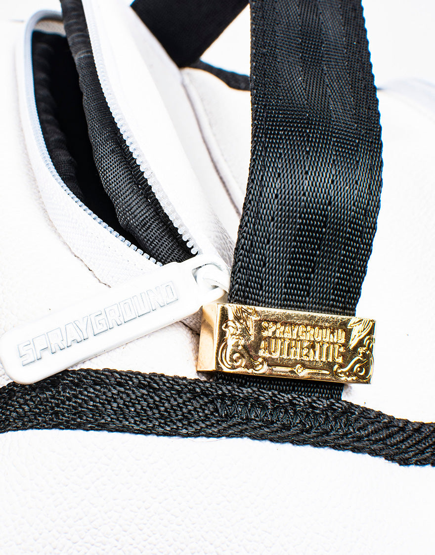 ExteriorDimensions: 18" x 6" x 11.5" ∙ Front zipper pocket ∙ Side pockets ∙ Zippered Stash pocket ∙ Ergonomic mesh back padding ∙ Adjustable Straps for custom sizing ∙ Nylon Zippers with Metal Hardware ∙ Metal "Sprayground Authentic" badge ∙ Slide through back sleeve connects to Carry on luggage to free your hands