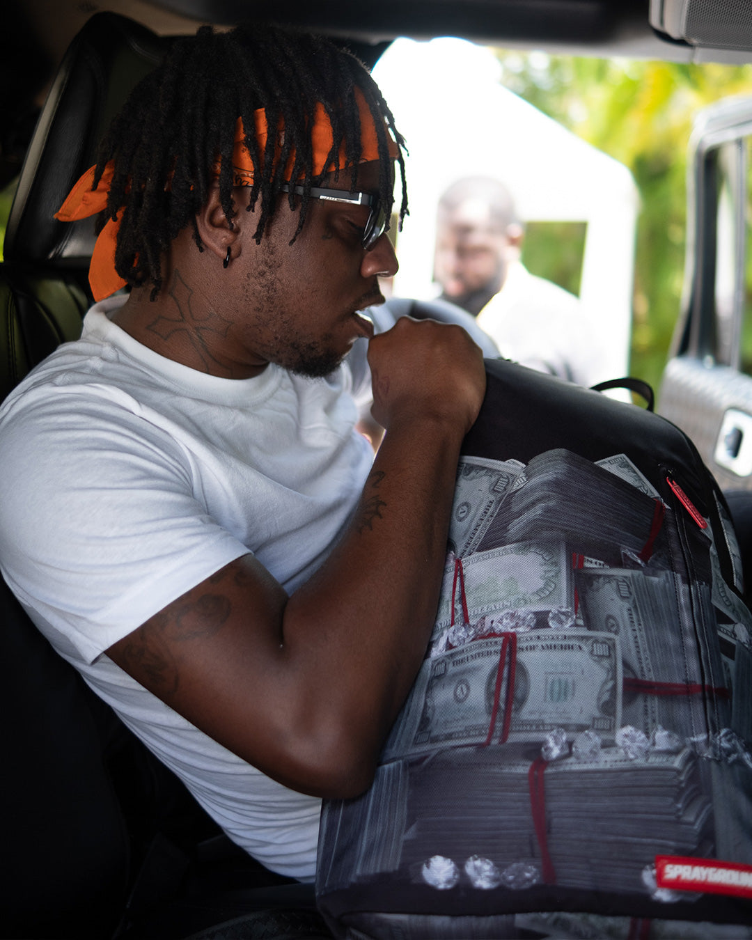 ExteriorDimensions: 18" x 6" x 11.5" ∙ Front zipper pocket ∙ Side pockets ∙ Zippered Stash pocket ∙ Ergonomic mesh back padding ∙ Adjustable Straps for custom sizing ∙ Nylon Zippers with Metal Hardware ∙ Metal "Sprayground Authentic" badge ∙ Slide through back sleeve connects to Carry on luggage to free your hands