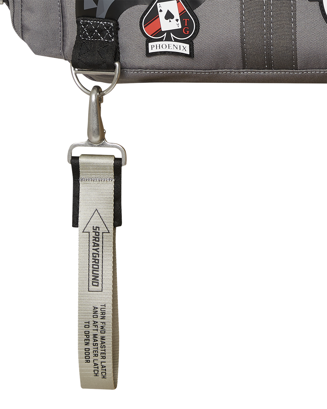 Dimensions: 18"H X 15"W X 8'D • Front zipper pocket • Side pockets • Zippered Stash pocket • Separate velour sunglass compartment • Ergonomic mesh back padding • Adjustable Straps for custom sizing • Gold zippers with metal hardware • Metal "Sprayground Authentic" badge • Slide through back sleeve connects to carry-on luggage to free your hands