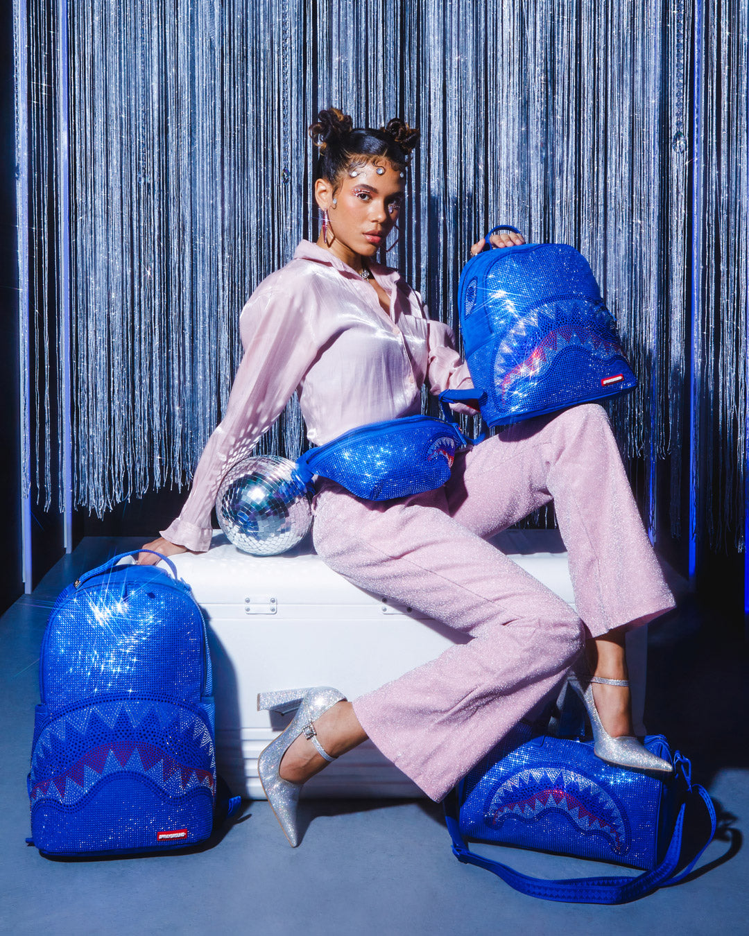 ExteriorDimensions: 18" x 6" x 11.5" • Front zipper pocket • Side pockets • Zippered Stash pocket • Separate velour sunglass compartment • Ergonomic mesh back padding • Adjustable Straps for custom sizing • Gold zippers with metal hardware • Metal "Sprayground Authentic" badge • Slide through back sleeve connects to carry-on luggage to free your hands