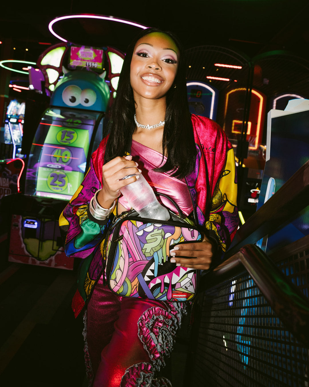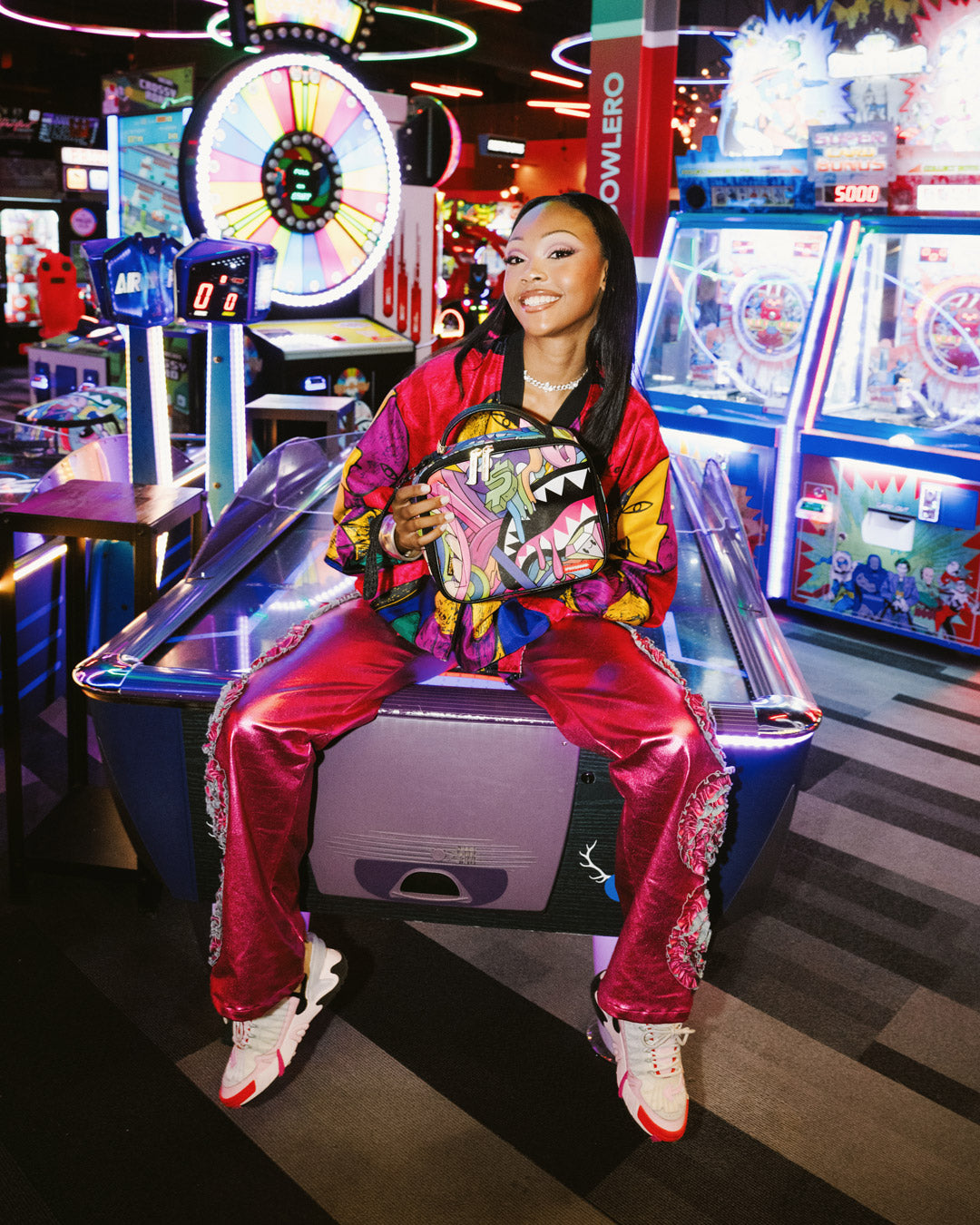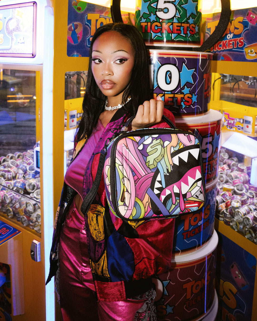 ExteriorDimensions: 8.5" x 3" x 8.5" • Double zipper opening • Top handle • Removable side handle • Red zippers with metal hardware • Zippered stash pocket