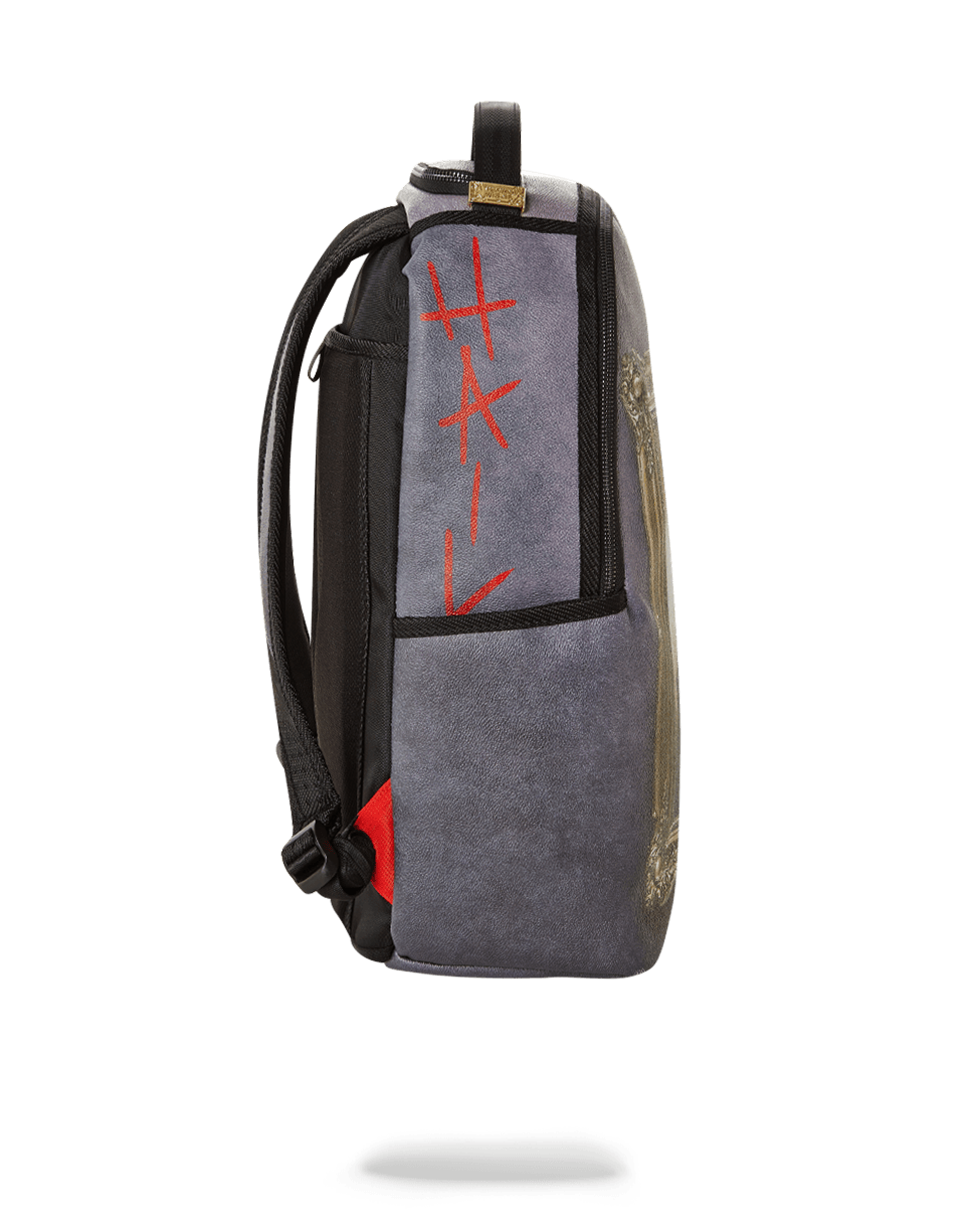 ExteriorDimensions: 18" x 6" x 11.5" • Front zipper pocket • Side pockets • Zippered Stash pocket • Ergonomic mesh back padding • Adjustable Straps for custom sizing • Nylon Zippers with Metal Hardware • Metal "Sprayground Authentic" badge • Slide through back sleeve connects to Carry on luggage to free your hands