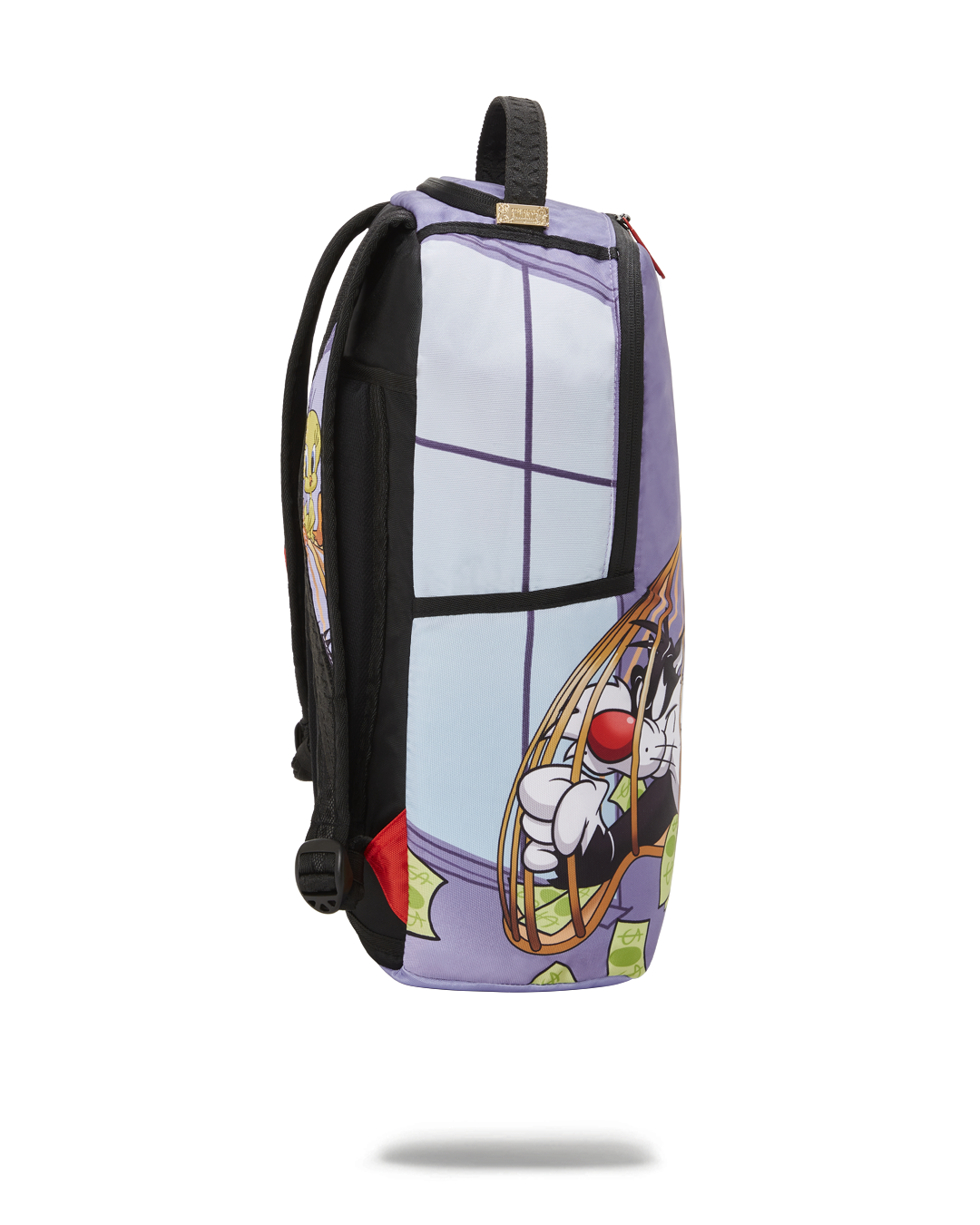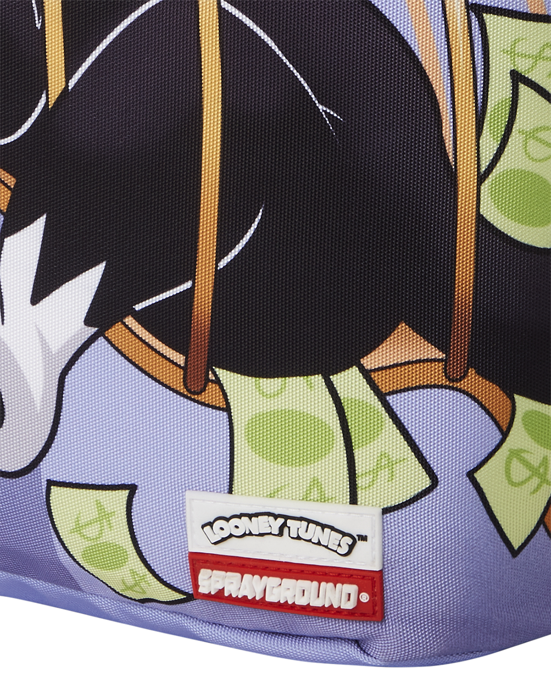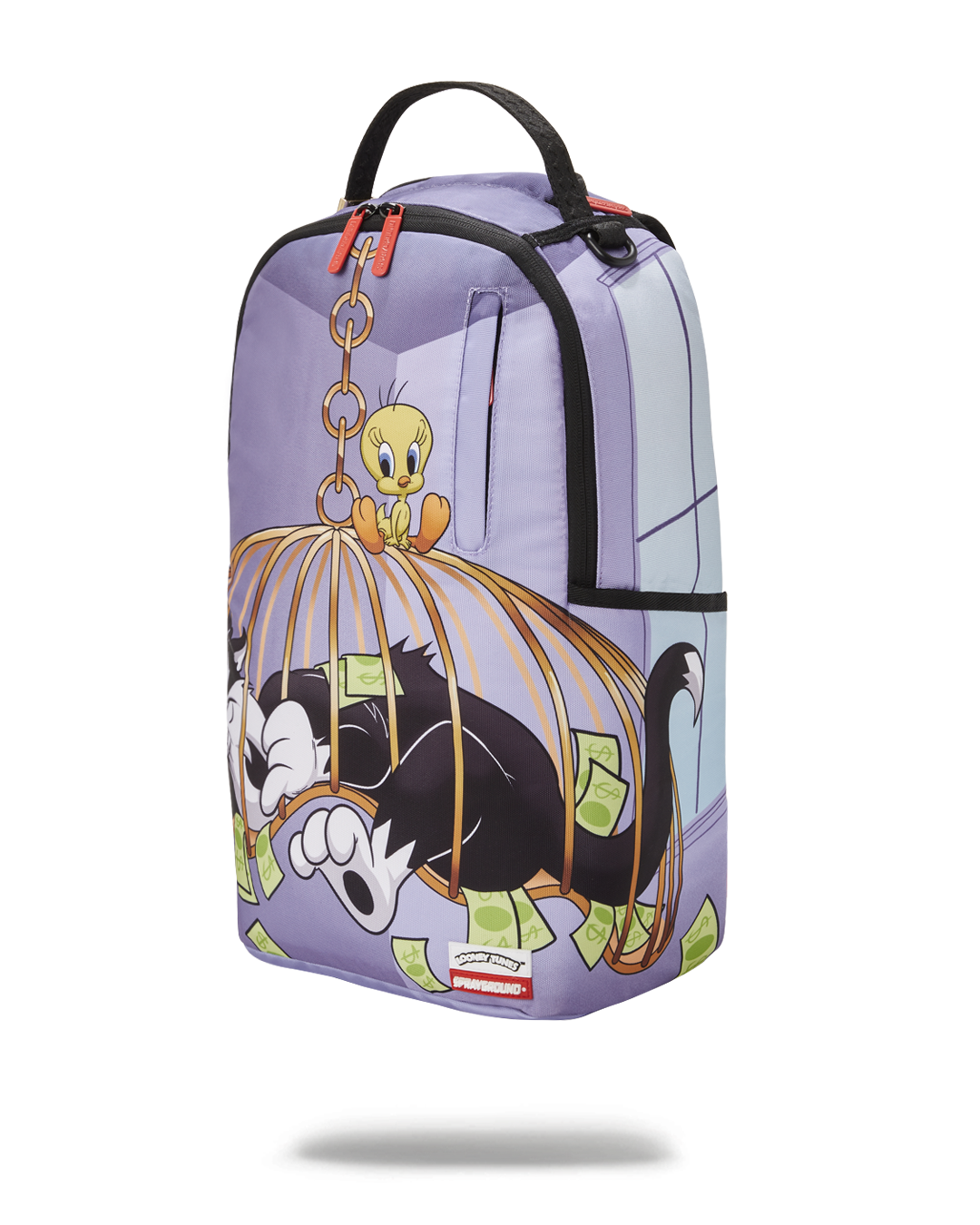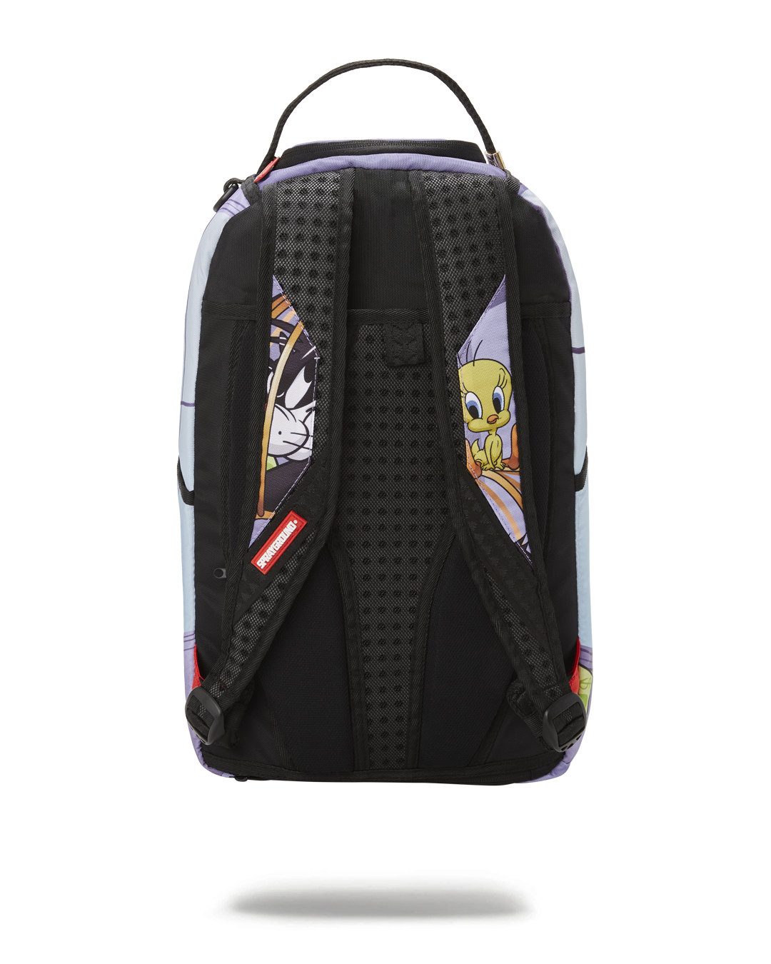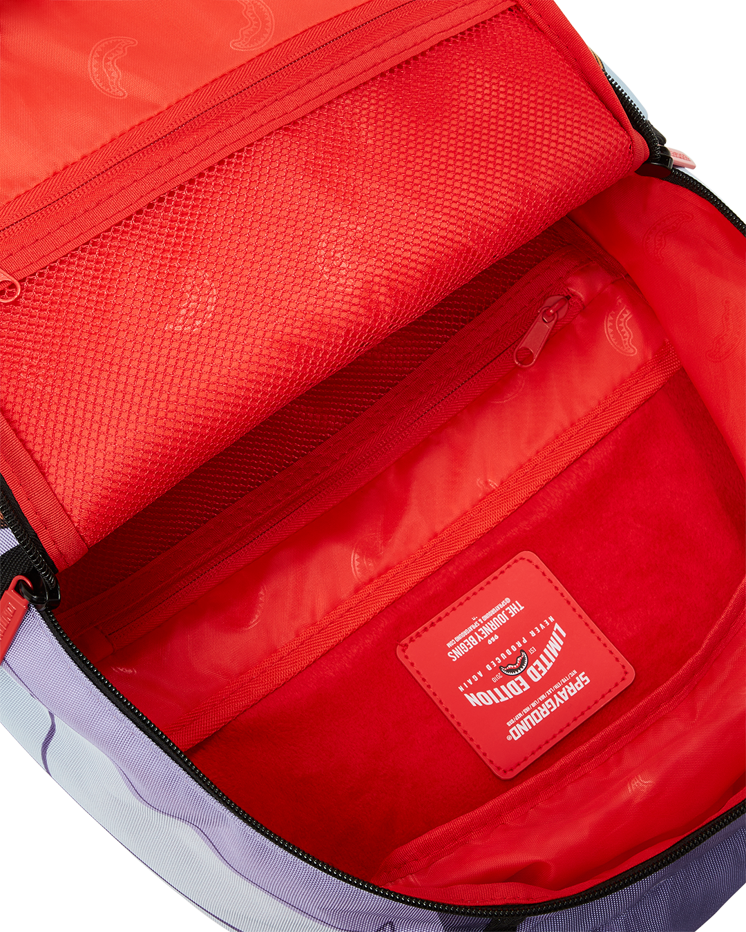 ExteriorDimensions: 18" x 6" x 11.5" • Front zipper pocket • Side pockets • Zippered Stash pocket • Separate velour sunglass compartment • Ergonomic mesh back padding • Adjustable Straps for custom sizing • Green zippers with metal hardware • Metal "Sprayground Authentic" badge • Slide through back sleeve connects to carry on luggage to free your hands