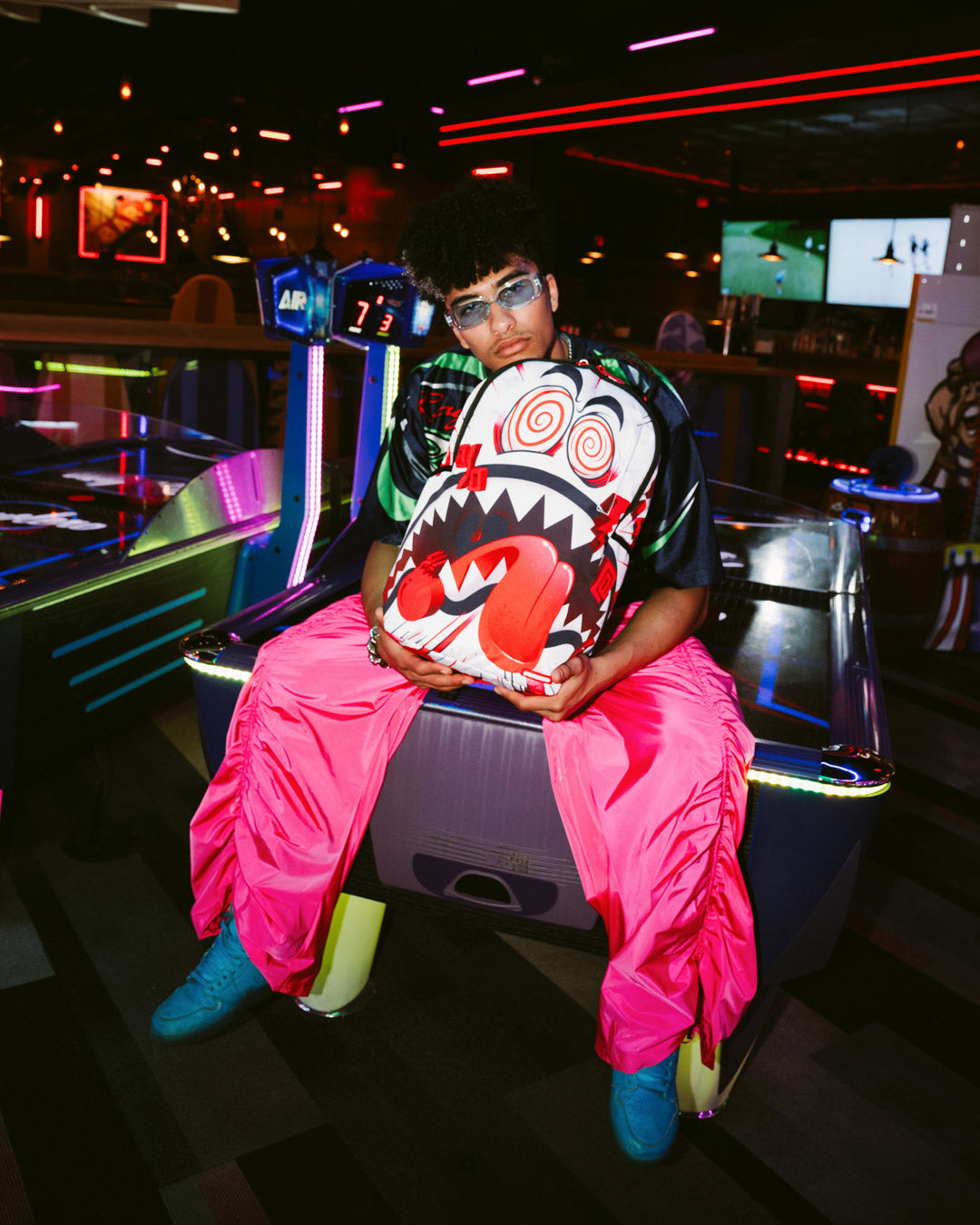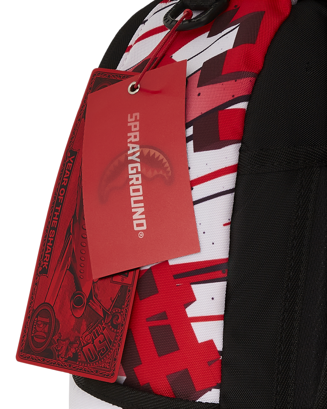 Dimensions: 18" x 6" x 11.5" • Front zipper pocket • Side pockets • Zippered Stash pocket • Separate velour sunglass compartment • Ergonomic mesh back padding • Adjustable Straps for custom sizing • Gold zippers with metal hardware • Metal "Sprayground Authentic" badge • Slide through back sleeve connects to carry-on luggage to free your hands
