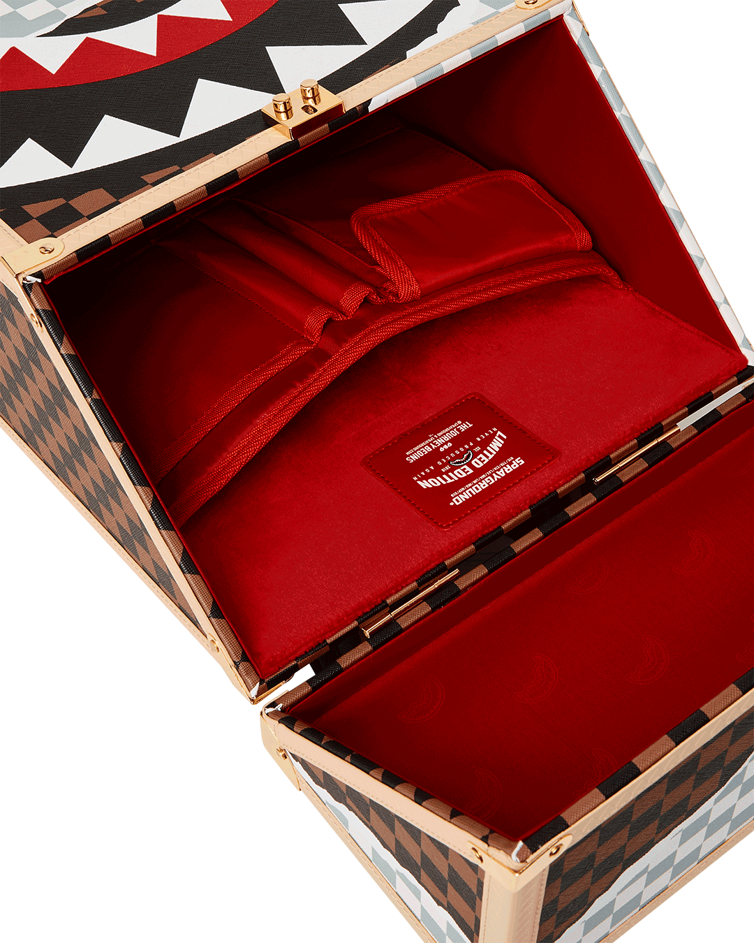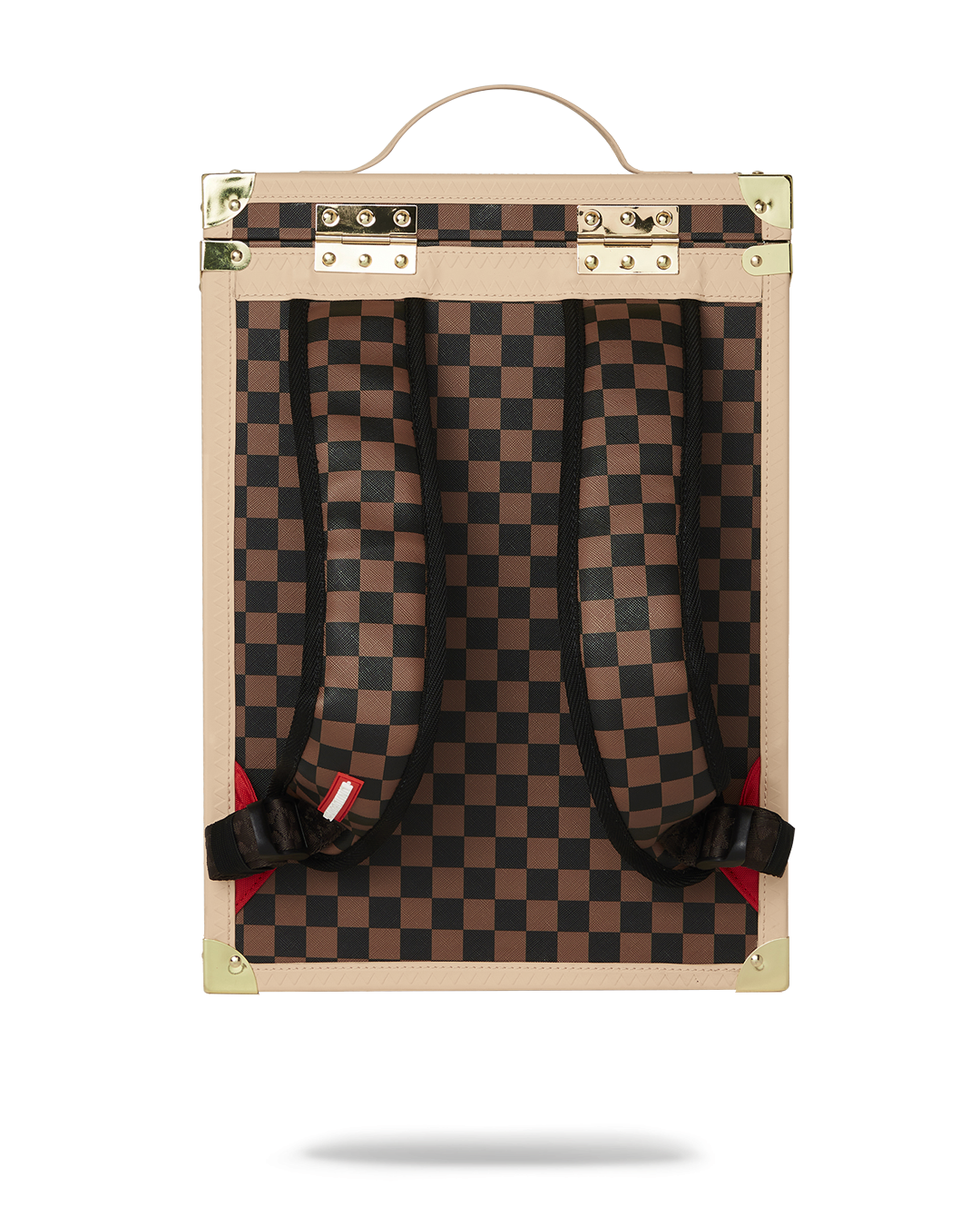 This unique Backpack is an instant classic. Drawing inspiration from a boxy shaped backpack that travelers and hikers used to use as one of the earlier designs of backpacks in the early 1900’s. Reinforcing it with a wooden frame and checkered shark pattern and luxe interior design for the modern adventurer. I call it the CHATURANGA SHARK to pay homage to the first ever board game that featured a CHESS PATTERN invented in India called Chaturanga Board Game., which would evolve into the CHECKERED PATTERN we all love and know in Fashion.
