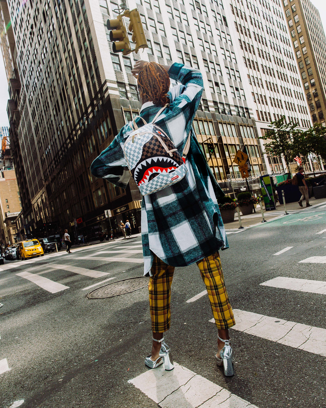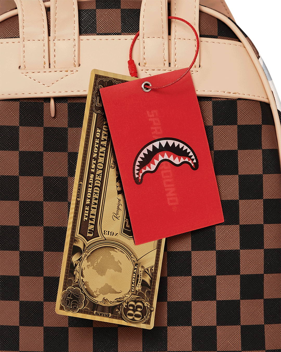 Dimensions: 10" x 5" x 11.5" • Two large main zippered compartments • Side pockets • Zippered Stash pocket • Adjustable straps for custom sizing • Gold zippers with metal hardware