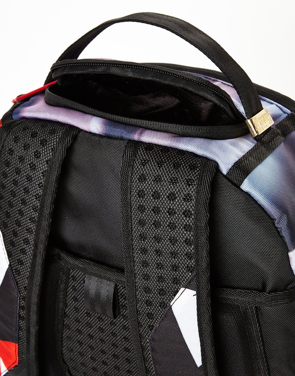 ExteriorDimensions: 18" x 6" x 11.5" • Front zipper pocket • Side pockets • Zippered Stash pocket • Ergonomic mesh back padding • Adjustable Straps for custom sizing • Nylon Zippers with Metal Hardware • Metal "Sprayground Authentic" badge • Slide through back sleeve connects to Carry on luggage to free your hands