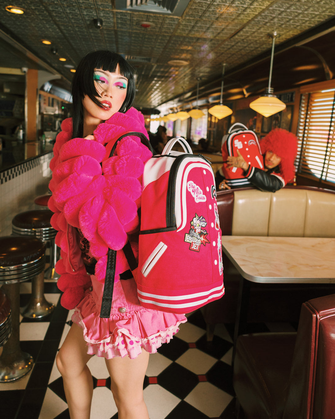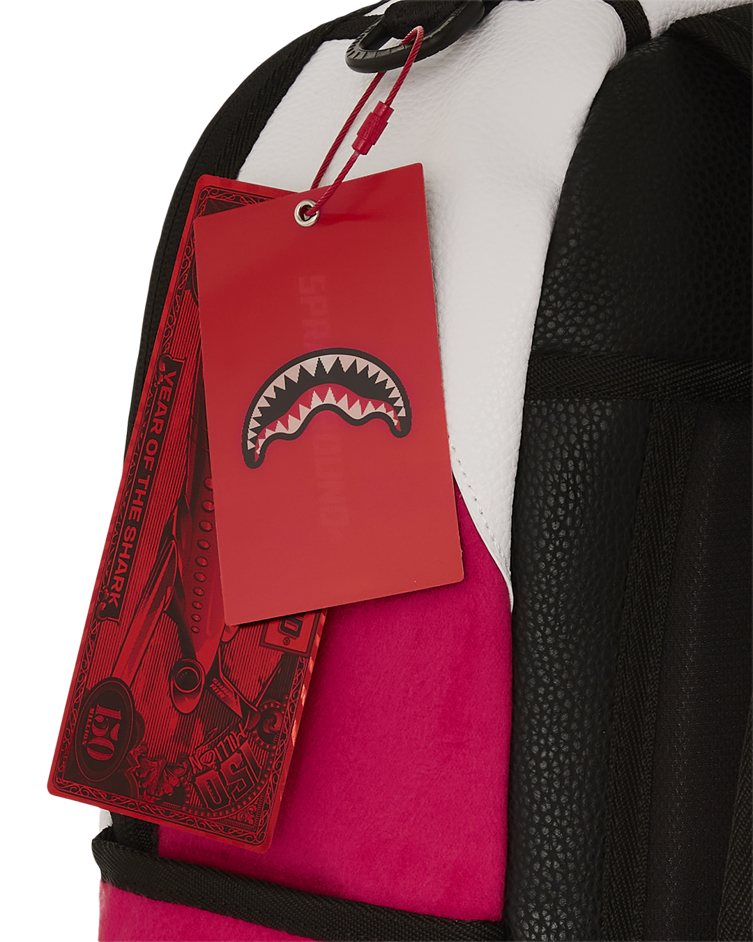 Dimensions: 18" x 6" x 11.5" • Front zipper pocket • Side pockets • Zippered Stash pocket • Separate velour sunglass compartment • Ergonomic mesh back padding • Adjustable Straps for custom sizing • Gold zippers with metal hardware • Metal "Sprayground Authentic" badge • Slide through back sleeve connects to carry-on luggage to free your hands