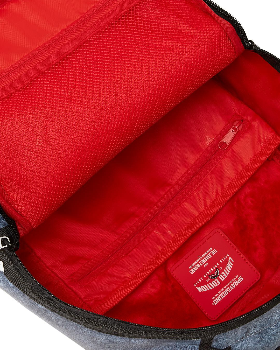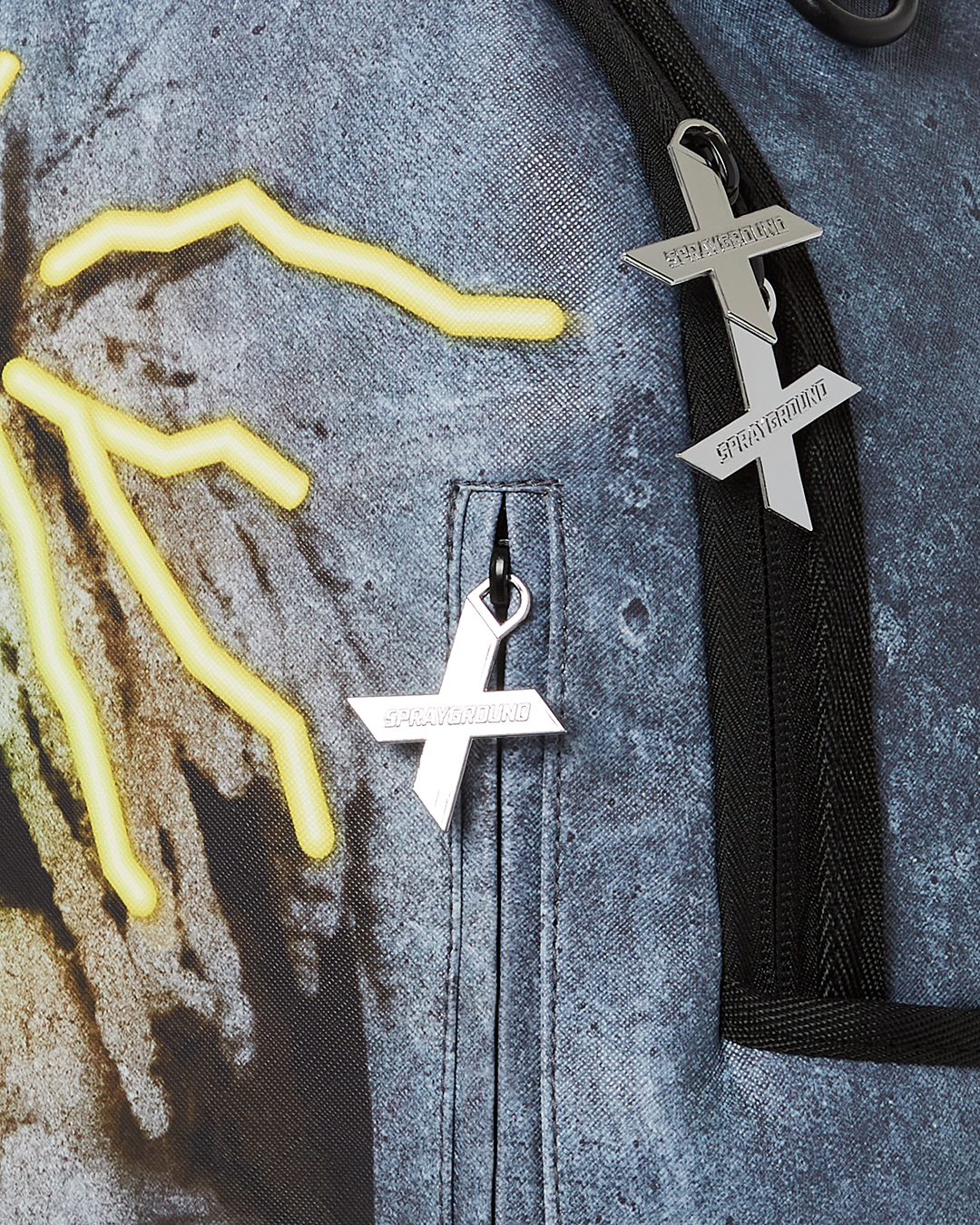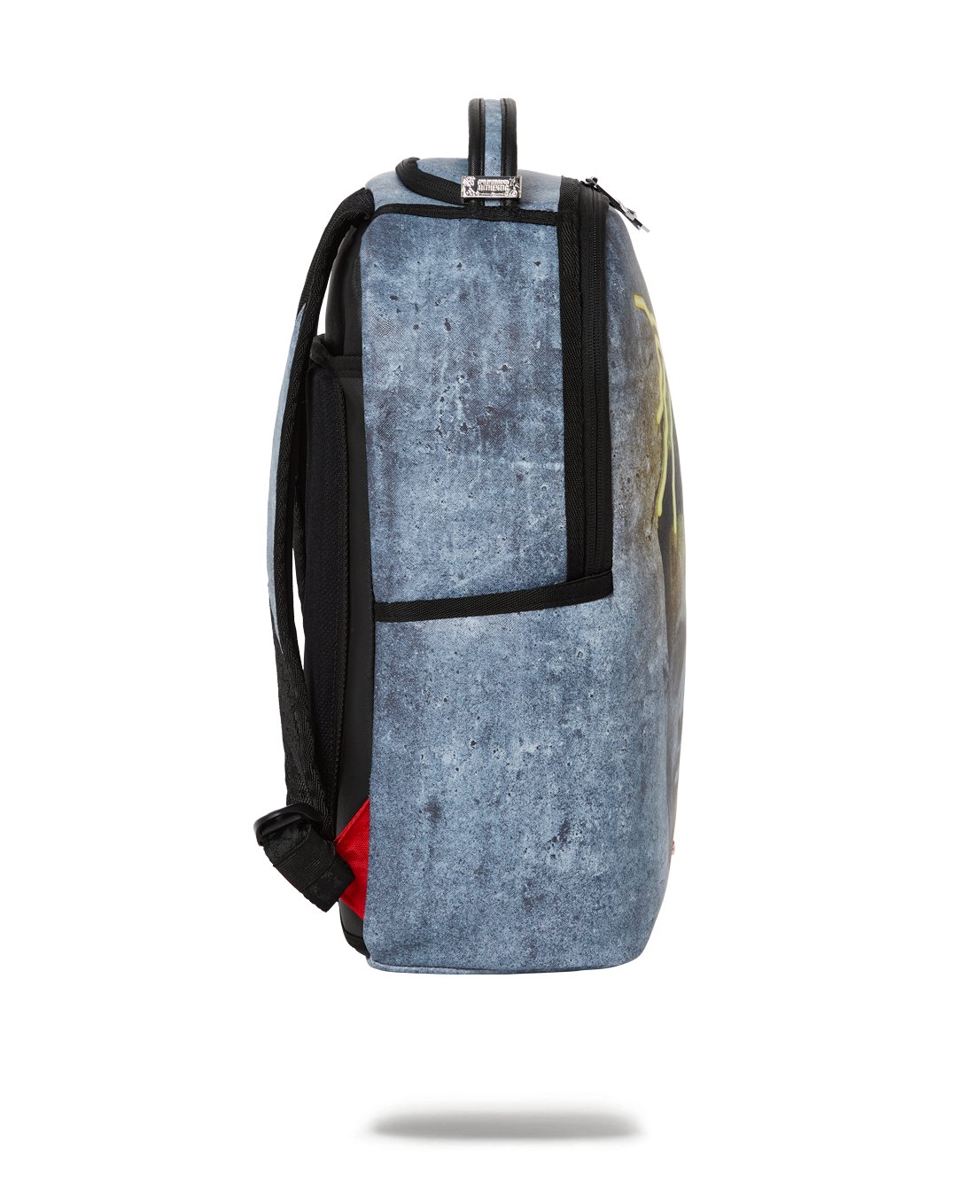 ExteriorDimensions: 18" x 6" x 11.5" ∙ Front zipper pocket ∙ Side pockets ∙ Zippered Stash pocket ∙ Ergonomic mesh back padding ∙ Adjustable Straps for custom sizing ∙ Nylon Zippers with Metal Hardware ∙ Metal "Sprayground Authentic" badge ∙ Slide through back sleeve connects to Carry on luggage to free your hands